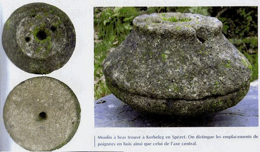 Exemple : moulin à bras entier découvert à Spézet-29Source : « Les moulins de Bretagne » Gilles Pouliquen. Coop Breizh.